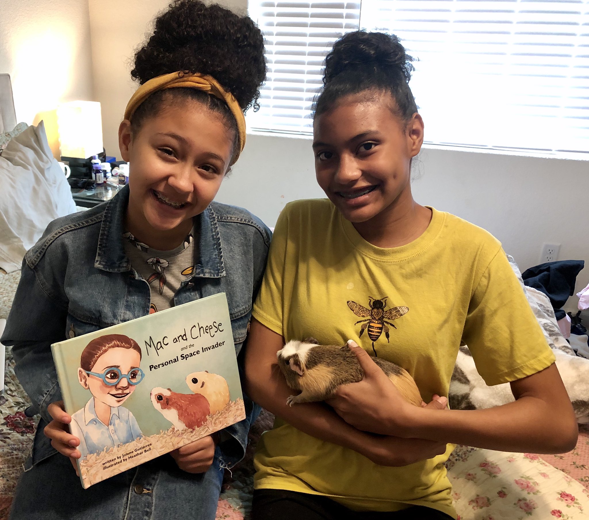 Jolene: Oh, my goodness! I love hearing that the sticker made it on his phone! I knew the main character, Oliver, was a kid who loved animals and nature, and I thought he could study the class pets and try to learn social skills from them. . .and then, I needed to decide what type of animals the class pets would be. I settled on guinea pigs and named them Mac and Cheese, and Heatherโs Mac and Cheese are just adorable!ย