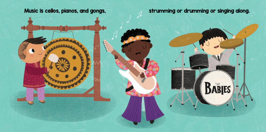 Laura: I was a music kid growing up. I played the oboe, and spent most of my free time either practicing or at rehearsals. I met some of my closest friends and my husband through music, and I had so many amazing experiences as a result of being a musician–including giving a concert at a solid rock church in Scandinavia, playing the music from Star Wars in Spain, and staying with host families in Argentina and Ireland while performing in those countries (Fun fact: I got sick when in Ireland, and my host family was 100% serious in telling me that drinking Guiness would make me feel better!). While my personal experience was primarily with classical music, I believe all kinds of music have the power to bring people together. And I wanted to write a book that would inspire families with young kids to play and/or listen to music. Whether Brilliant Baby Plays Music inspires families to pull out pots and pans for drumming, to blast the radio in the car, to have a dance party, or to attend a concert, I hope the book leads to joyful shared musical experiences.