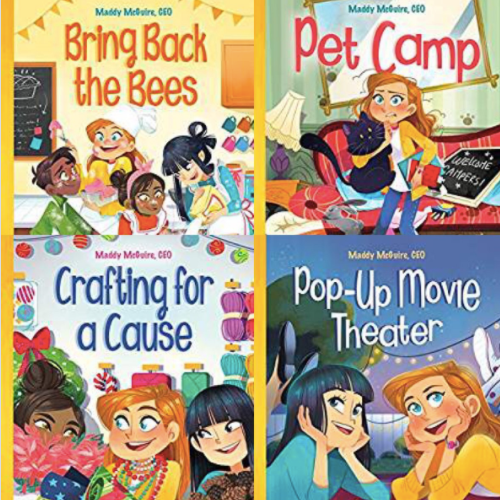 Emma: My two books series with ABDO are chapter books, and fiction, so they’re as different from my nonfiction picture books as can be. I absolutely loved working with ABDO. For both series, I started by coming up with a really strong hook. In one case, I actually began with the first book title first: Pet Camp. I just loved the sound of it and thought it would draw kids in! That series, called Maddie McGuire, CEO, was about a girl and her friends who come up with creative businesses. The second series, Gavin McNally’s Year Off, features a boy whose family decides to rent an RV and drive around the country for an entire year. For me, it really helps to have that strong hook to create a fun, unique setting and series.